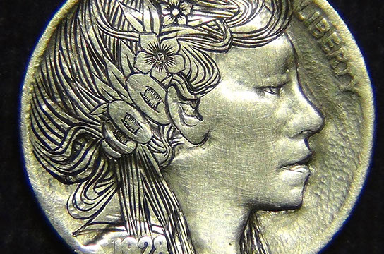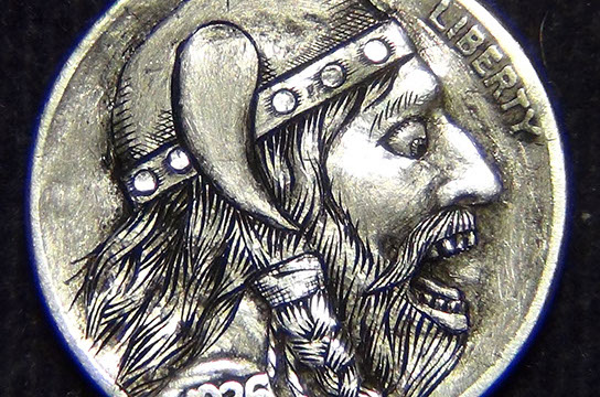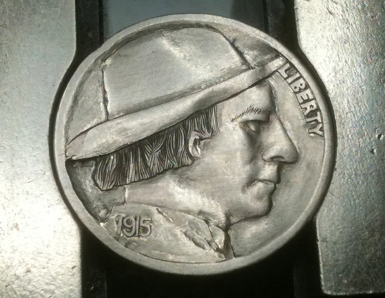 Hobo Nickels are a form of folk art from the early part of the 20th century. The artist re-cuts a coin, usually a Buffalo nickel. Originally given as a token of appreciation for a hot meal or a warm dry place to sleep, they are now collected for their artistic merit as well. Early examples were cut with impromptu tools. Engravers recently have rediscovered this form of folk art and use it as a great exercise of modern engraving techniques.