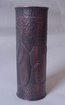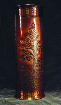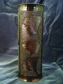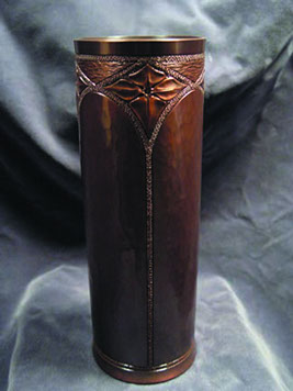 Vases in the studio take many forms. by far the favorites are made of extruded tube that is hammered and chased to bring out surface details in the design. Customization is always an option as most vases are made-to-order.